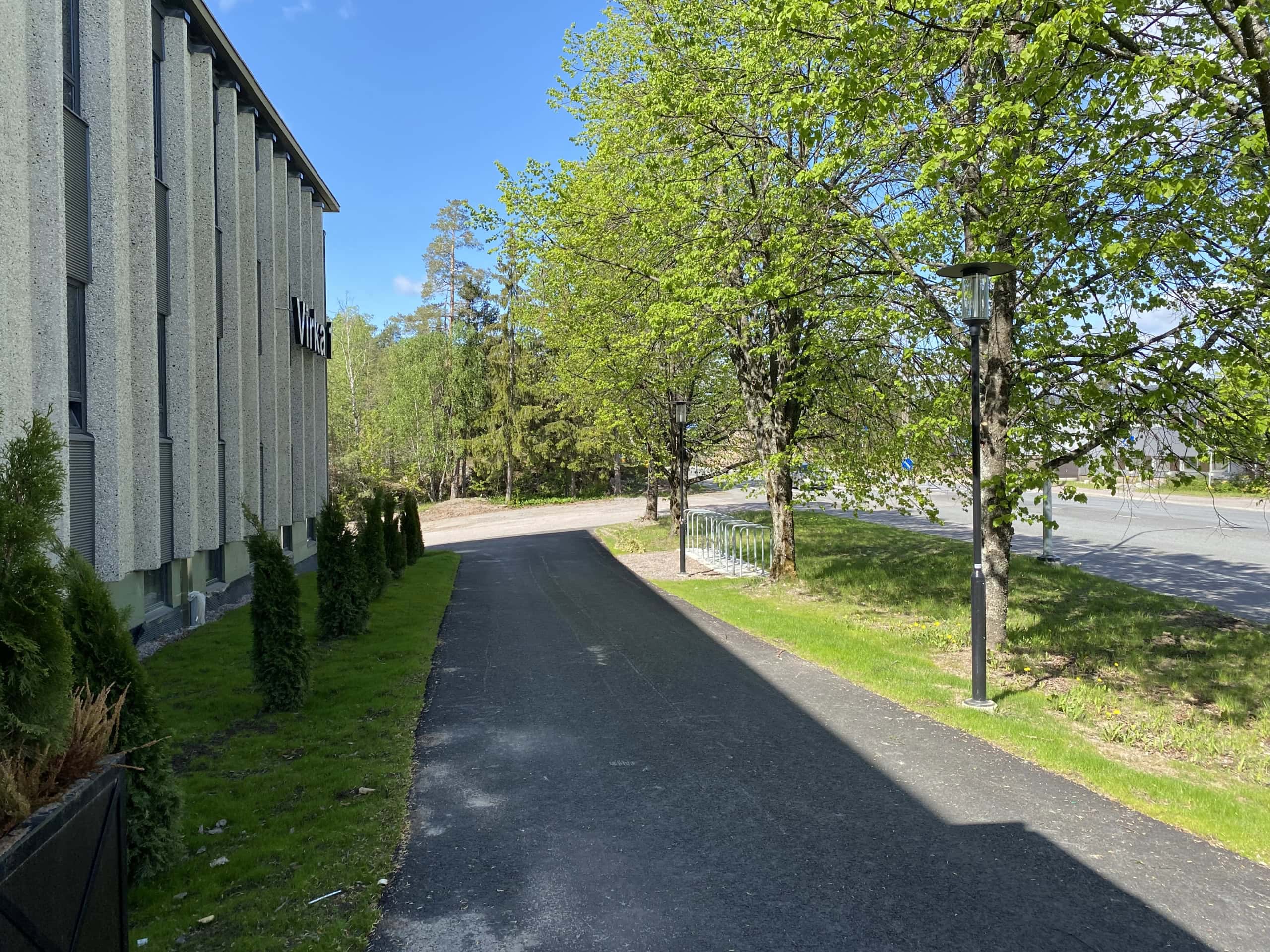 Iso asfaltoitu piha-alue, jolta mahdollisuus vuokrata p-paikkoja. Myös normaali- ja teholatauspisteet.